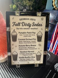 Besides the clothing and accessories, they also offer a Dirty Soda Bar at Georgia Lou’s. It’s based on soda, or Alani, an energy drink,” Marcie said explaining how it works. We coordinate it with the drink, or Starbucks Frappuccino then mix it with ice. We have all kinds of syrups, then top it with cream and cherries. It is so tasty, I had to cut myself off!”